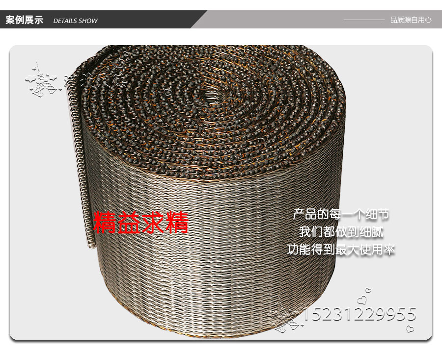 人字形網帶應用:主要應用于食品烘干機、蔬菜、海產品清洗機,巴氏機,方便面米粉蒸煮、熱收縮膜包裝機。玻璃瓶罐、食品、燈炮、金屬、器皿、化纖、印染、醫藥、電子、粉末冶金、熱處理、木材、物流輸送等各行業自動裝置和自動流水線的使用;焦爐煤氣及電子紅外線等各種窯爐系統的傳動使用等食品機械,玻璃機械,輸送機械。