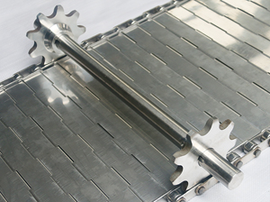 帶擋板的鏈條網帶鏈條的內側加裝的擋板,擋板可以是單獨加裝也可以是加高鏈條片,加裝側面擋板以后可以有效的防止在輸送物料的過程中物料側漏,因為擋板和輸送帶是同步運轉所以加裝擋板以后還可以防止在輸送過程中物料可機身發生接觸和摩擦,避免了物料的損壞和網帶的卡頓。
